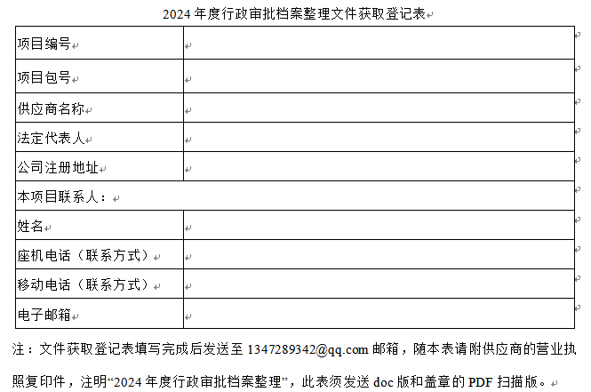 供应商需将文件获取登记表发送至邮箱1347289342@qq.com。